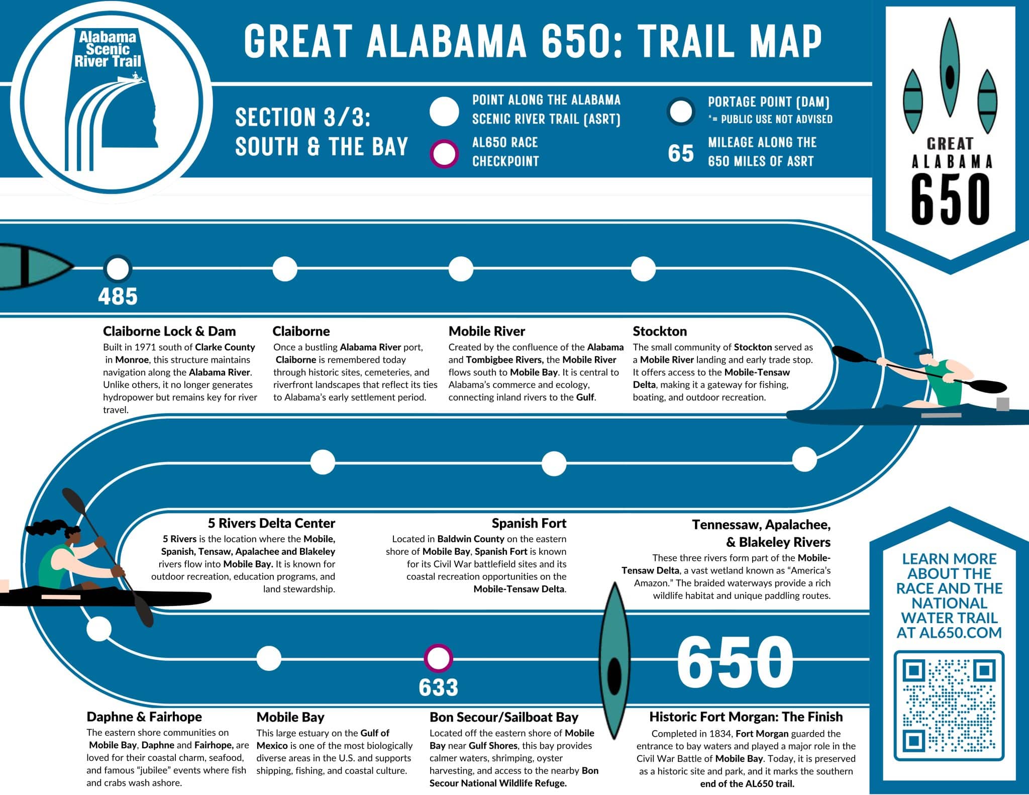 The Great Alabama 650 isn’t just a race—it’s the ultimate test of grit on America’s waterways. Spanning 650 miles from the Appalachian foothills to the Gulf of Mexico, this course is the longest paddle race in the United States and the crown jewel of the Alabama Scenic River Trail. Since its launch in 2019, the race has been hosted by the Alabama Scenic River Trail and has quickly earned a reputation as one of the toughest endurance paddling events in the world. With nearly a decade of leadership and race direction from Roam Projects, led by Greg Wingo, the AL650 has grown into a world-class competition that attracts elite athletes from across the globe. From whitewater rapids and winding river valleys to the vast Mobile-Tensaw Delta, this race pushes physical and mental limits, celebrating both the strength of its racers and the beauty of Alabama’s waterways.